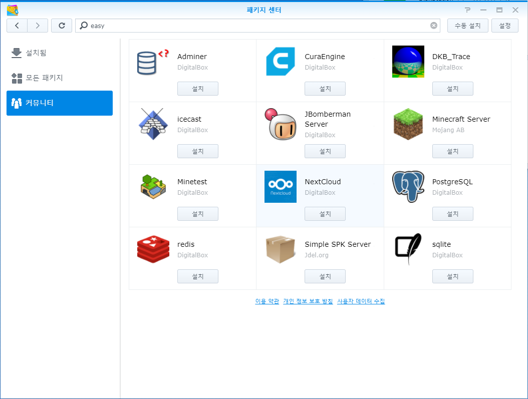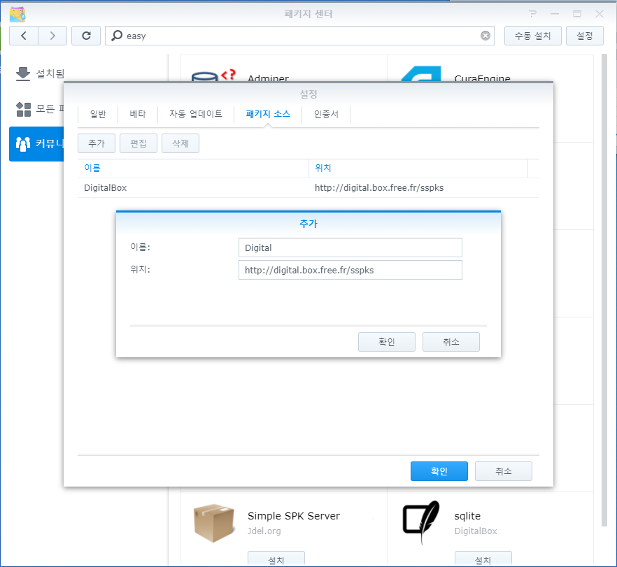 1. 패키지 센터 > 패키지 소스 > 추가